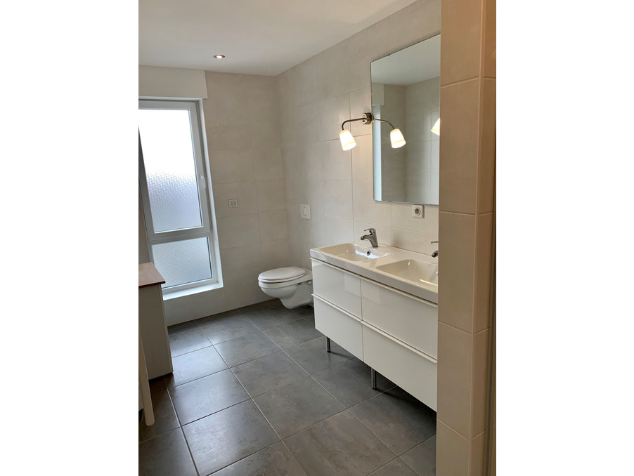 L'entrée vous mène à un grand séjour avec une cuisine ouverte équipée, le tout donnant sur la terrasse et le petit jardin et à un WC. Le garage et la buanderie sont attenants. ainsi que directement dans le garage, une buanderie, un wc et une grande entrée.
